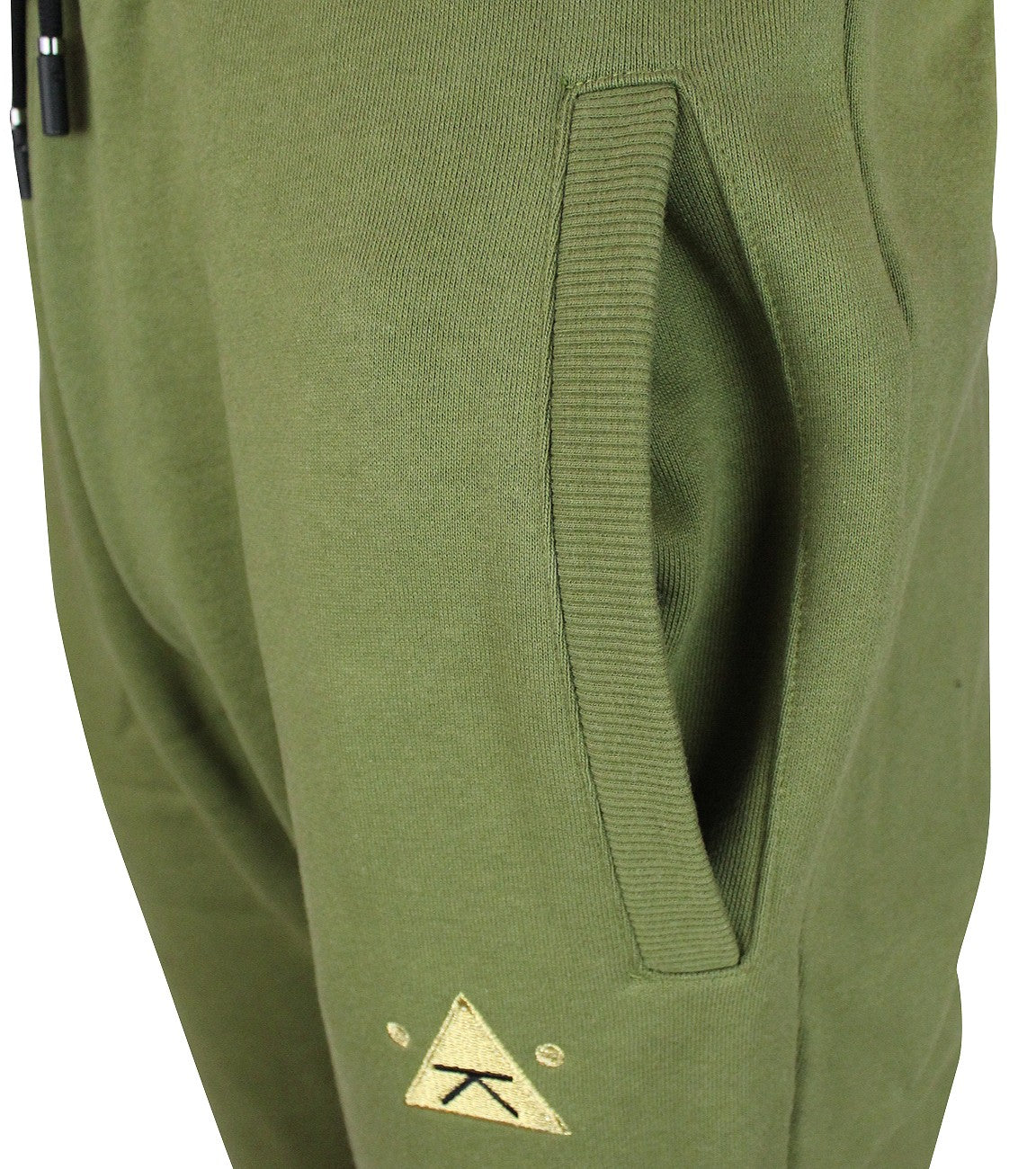 Relaxed fit joggers by Karl Kani. Embroidered K logo in front, two pockets, elastic waist with a drawstring. 60% Cotton, 40% Polyester, machine washable.