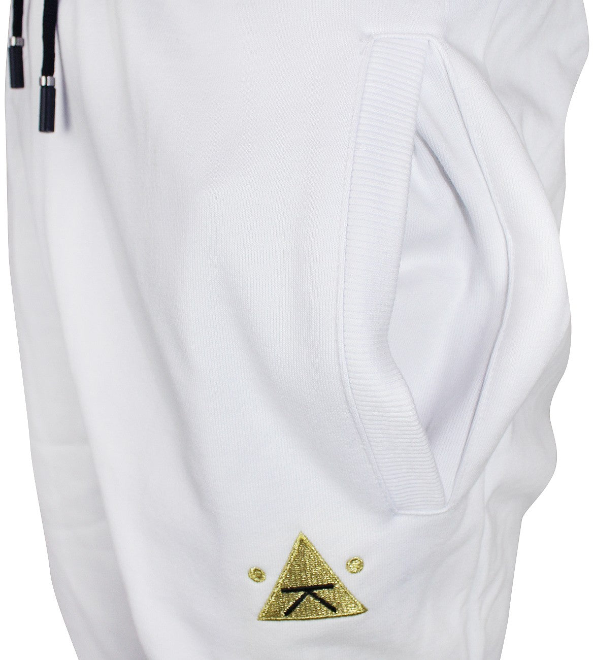 Relaxed fit joggers by Karl Kani. Embroidered K logo in front, two pockets, elastic waist with a drawstring. 60% Cotton, 40% Polyester, machine washable.